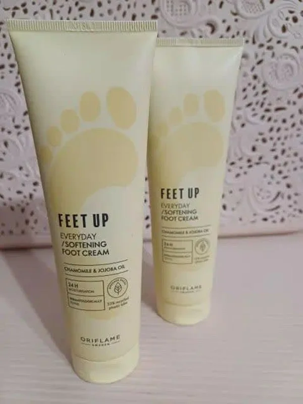 با پوست خشک خداحافظی کنید و از پاهایی نرم و سالم لذت ببرید. کرم پا نرم کننده روزانه Feet Up با اثرات نرم کنندگی بابونه طبیعی و جوجوبا بافتی فوق العاده نرم دارد و با رطوبت رسانی 24 ساعته پوست پا را بدون احساس چربی نرم ولطیف می کند. از نظر درماتولوژیک تست شده است. فاقد پارابن. توسط آزمایشات بالینی تایید شده است.