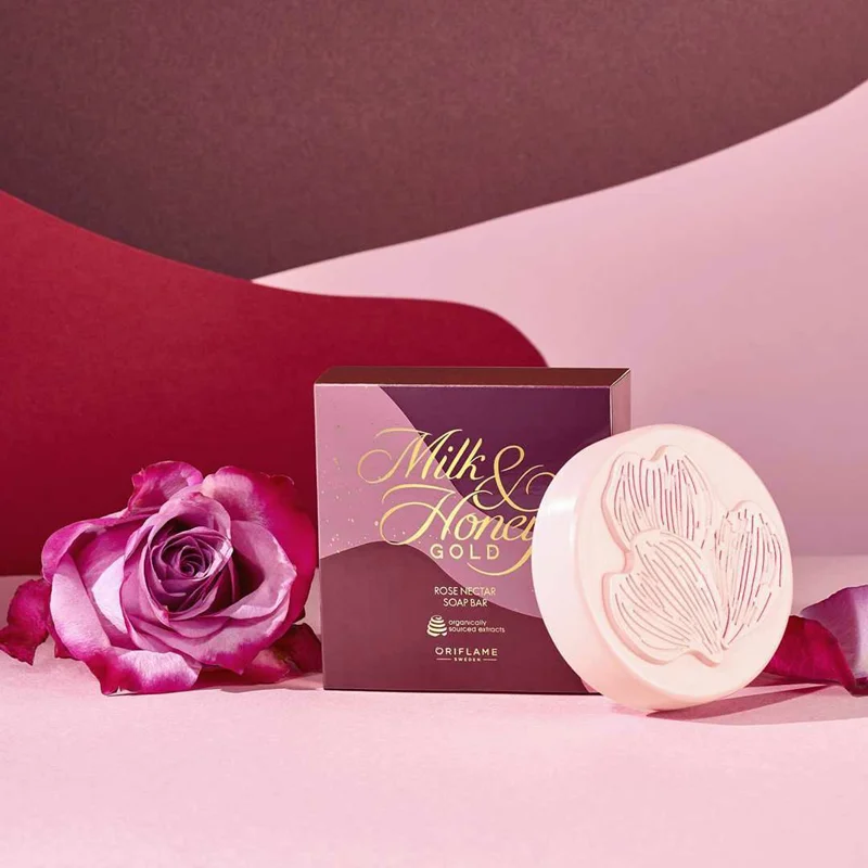 نوار صابون غنی کرمی لوکس با عصاره های ارگانیک از شیر و عسل، با رایحه ای زیبا از گل رز.